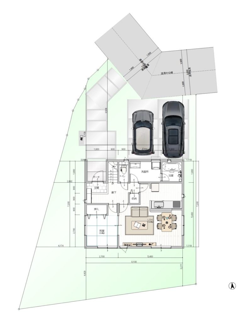 | 接道方向1 | 北 | 接道間口1 | 8m |